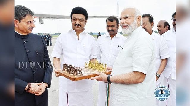CM Stalin gifts a Chess board to PM Modi before he left Chennai.