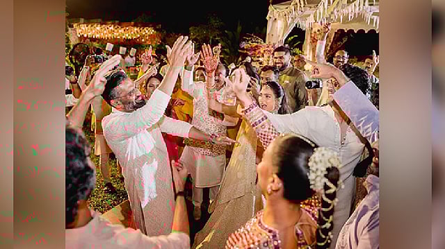 MUMBAI: Actor Suniel Shetty, on Monday, dropped a new picture from her daughter Athiya Shetty and cricketer KL Rahul's sangeet ceremony. Taking to Instagram, Suniel dropped the picture which he captioned, "You had me wrapped around your finger since the day you were born and now you have me dancing to your tunes ... love you my baby ... stay blessed always."