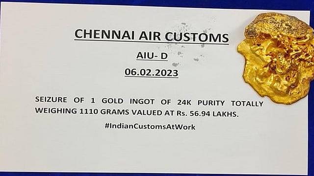 Based on Intelligence, Chennai Air Customs officers intercepted one male passenger who arrived from Dubai. In search of his person, officials found one pouch of gold in paste form concealed in his undergarments and two pouches of gold in paste form concealed in the kneecaps resulting in the recovery of a gold ingot of 24K purity weighing 1110 grams valued at Rs 56.94 lakh. The same was recovered and seized and the passenger was arrested under the Customs Act, 1962.