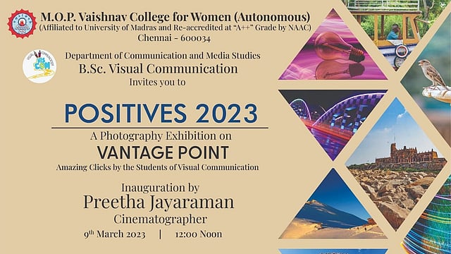 The visual communication department of the college organised a Bi-Yearly photography exhibition called 'POSITIVES', said MOP Vaishnav College Principal Lalitha Balakrishnan.