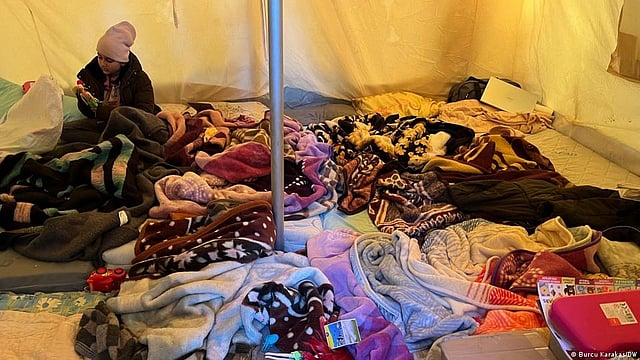 The Astan family shares a tent with several other people. In total, 13 people live here, including nine children. “This tent just isn’t large enough for 13 people,” Astan said. In addition to the criticism of official efforts to prepare for earthquakes, people across Turkey are calling the government’s response inadequate. Many survivors have had to forgo showers since the quake hit on February 6. But that isn’t their biggest problem: worst of all, residents say, is the lack of proper toilets. And there is refuse everywhere. A representative of the Family and Social Services Ministry in the camp told DW that he called faraway cities such as Nevsehir and Konya to ask for help. “I told them: At least send us a rubbish container so refuse won’t pile up where people walk,” the representative said. “And, of course, there is the acute danger of infectious diseases spreading.”