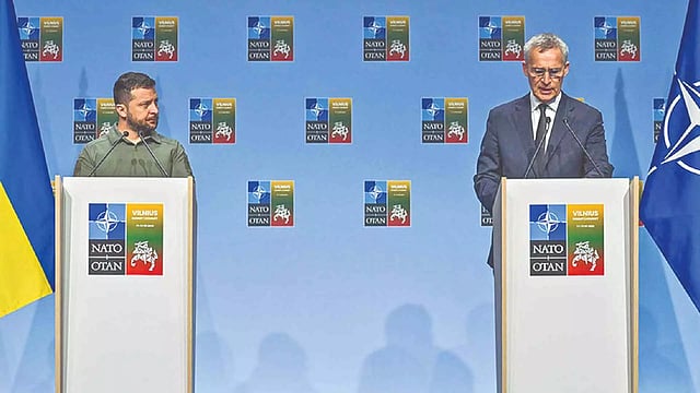 To be sure, NATO leaders’ promise to extend an official invitation to Ukraine “when Allies agree and conditions are met” was somewhat nebulous, and Zelensky, angered by the ambiguity, criticised the Western position as “unprecedented and absurd.” But US President Joe Biden was right to suggest that the war must end before Ukraine is allowed to join.