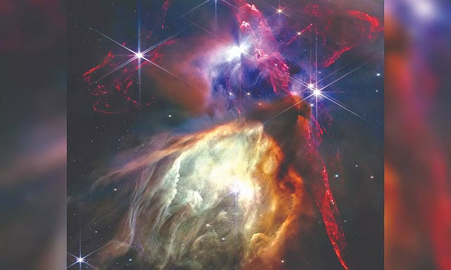 NEW YORK: By now, perhaps, we should be getting used to unreal images of the cosmos made with the James Webb Space Telescope. But a year after NASA released the cosmic observatory’s first imagery, the space agency has dropped yet another breathtaking snapshot of our universe. Wednesday’s image was Rho Ophiuchi, the closest nursery of infant stars in our cosmic backyard. Located a mere 390 light years away from Earth, this cloud complex is chock-full of stellar goodness. Around 50 stars with masses comparable to our sun are sprinkled in white: some fully formed and shining bright, others still hidden behind dark, dense regions of interstellar dust. (Zoom in closer and you’ll even find a faint galaxy or two.)
