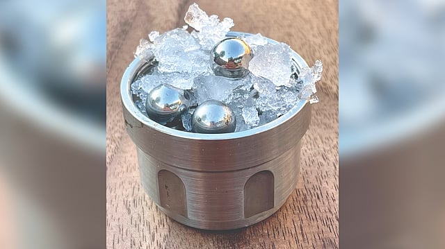 Dr. Salzmann and his colleagues were not looking to add to the catalog of water ices. They instead wanted to study very tiny ice crystals, because minuscule bits of something sometimes possess properties very different from larger bits of the same stuff. So Alexander Rosu-Finsen, a postdoctoral scientist in Dr. Salzmann’s research group and the lead author of the Science paper, started smashing up ice. The water ice was first chilled in liquid nitrogen to minus 320 degrees Fahrenheit and then placed in a container along with steel balls. A machine then shook the ice and steel balls, still chilled at ultracold temperatures, back and forth at 20 times per second, pulverizing the ice into tiny bits, a process known as ball milling.