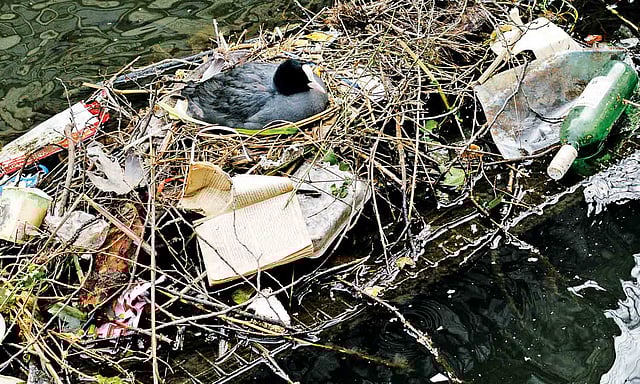 These plump, black-and-white birds have made themselves at home in the canals of central Amsterdam. There, they have become expert recyclers, building their nests out of human trash.