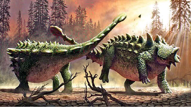 In a study published Wednesday in the Biology Letters, researchers analysed the anatomy of one of the world’s most complete ankylosaur skeletons. They discovered several broken and healed armour plates concentrated around the creature’s hips that lacked any clear signs of disease or predation. Instead, the armour appeared to have been splintered by another ankylosaur’s club.