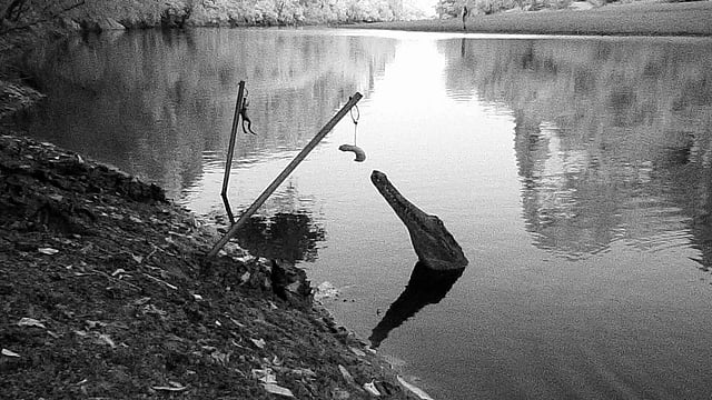 To alter the local crocodiles’ eating habits, the team worked with Indigenous rangers to set bait along the riverbanks of four gorges (another river was left un-baited and used as a control). Each of the bait stations contained a cane toad carcass and a chicken neck dangling over the water. The team removed the toads’ poisonous glands and injected a nauseating lithium chlorine solution into the toads’ back legs. They monitored the crocodiles’ feeding activity with remotely triggered wildlife cameras.