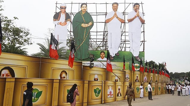 As many as 23 resolutions were set to be adopted. The venue of the meet at suburban Vanagaram, a spacious marriage hall was decorated with flowers and the entire locality wore a festive look with party flags fluttering everywhere while colourful flex boards of leaders were placed prominently. One of the boards displayed a striking portrait (using an old photograph) showing Panneerselvam giving a bouquet to EPS. The areas in and around the venue of the meeting witnessed severe traffic congestion and it took hours together for the bumper to bumper traffic to ease.
