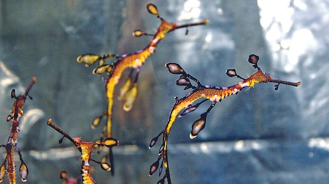 Last May, aquarium staff members discovered that a male weedy sea dragon was successfully carrying his mate’s eggs.
