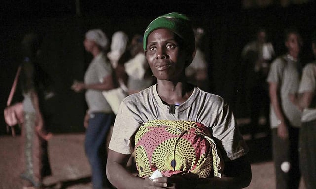 During the play, Dabone, the displaced mother of three, stood at center stage with her toddler tied to her back and spit out a long, white paper strip. It symbolized all the haunting thoughts leaving her body, she said. But the question remains — for how long.