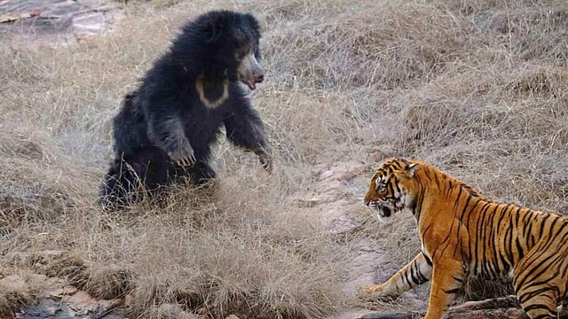 In North America, full-grown bears are seldom forced to fight predators for their lives. But things are different for the sloth bear of the Indian subcontinent. The animals go head-to-head with some of the fiercest predators of all: tigers.