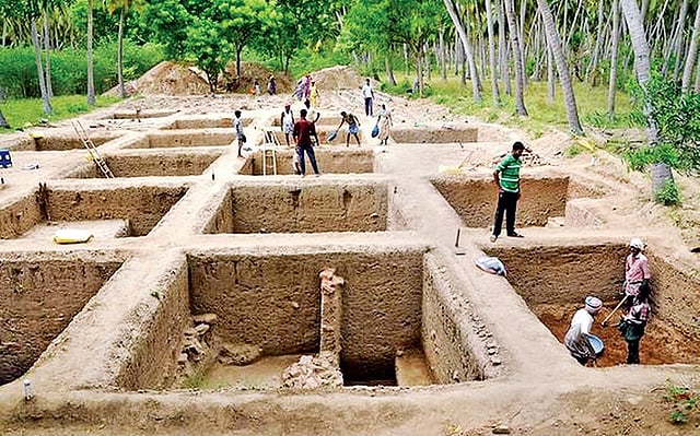 Archaeological excavations at Keeladi and Kodumanal reveal systematic craft production — bead-making, metallurgy and textiles — integrated into long-distance trade networks (Rajavelu, 2023). Roman coins found across Tamil Nadu point to robust Mediterranean trade, with exports such as pepper, pearls, textiles and gemstones (Sastri, 2019).