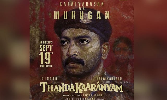 Neelam Productions, the production firm of director Pa Ranjith, which is producing the film, took to its X timeline to announce the character's name. It said, "Gut-wrenching, yet full of grit. #Kalaiyarasan as Murugan in #Thandakaaranyam. ThandakaaranyamFromSept19."