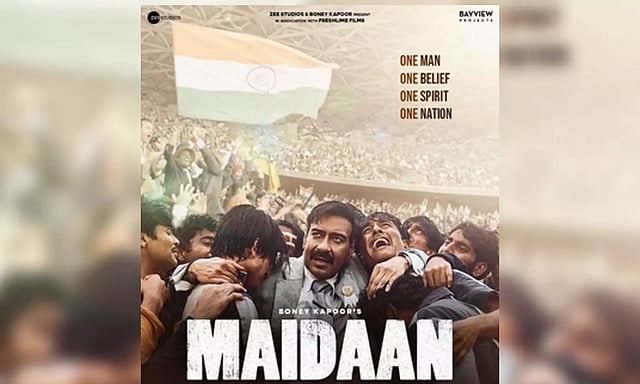The actor, who was most recently seen in the movie 'Bholaa', captioned the poster: "Witness an extraordinary story of a man, a team, a nation, and the unwavering belief that left an indelible mark on the history of Football! #MaidaanTrailerKicksOff7thMarch #MaidaanOnEid."