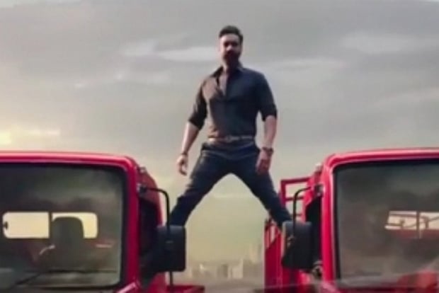 Ajay recreated his iconic 'Phool Aur Kaante' split stunt for the ad using trucks instead of bikes, which he originally used in the 1991 film.