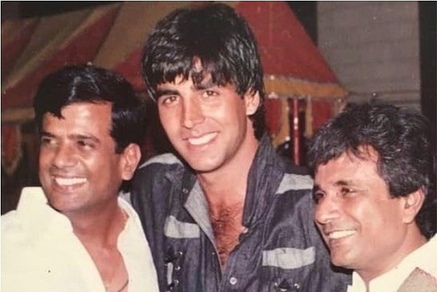 In the image, a young Akshay is smiles at the camera with Abbas and Mustan on either side. The photo seems to be clicked at a party around the release of the film.