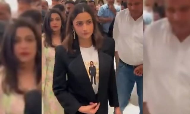 The photos and videos that went viral on social media, show Alia rooting for husband Ranbir, by wearing a white tee shirt with the latter’s character printed on it. The ‘Brahmastra’ actress completed the outfit with black formal coat and matching pants.