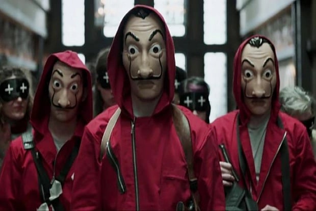 Leading the pack of fans was 'true heister' of the day Ananya, hiding beneath one of the Dali masks.