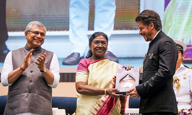 Their post featured two pictures of Shah Rukh from the 71st National Film Award ceremony where he was presented the honour for best actor by President Droupadi Murmu for his performance in the 2023 film "Jawan".