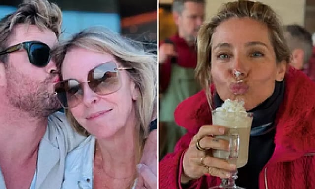 In the first photo, Pataky (47) pouted at the camera as she appeared with cream on her nose from a mug of hot chocolate she held up to her face.