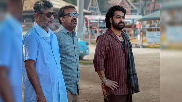 NTR Jr can be seen showcasing his signature style, donning a checkered shirt and dhoti, adorned with a bead necklace. He can be seen standing next to director Koratala Siva and choreographer Raju Sundaram from the montage song shoot. The magnum opus marks NTR Jr's second big collaboration with filmmaker Koratala Siva after the 2016 hit film 'Janatha Garage' which earned immense appreciation from audiences and critics.
