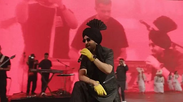 Diljit entered the stage with a complete Punjabi vibe by wearing a black kurta and tamba.