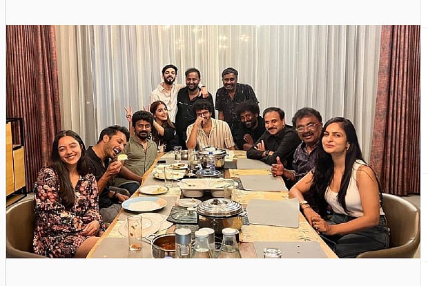 The note read, "Thank you Vijay sir for hosting us. It was a fun-filled and memorable evening with the whole team. I take this moment to thank Vijay sir for his love and support. You were a charm to work with sir. I am truly honoured & I shall cherish this experience for life. Your charisma and superstardom have taken this film all the way, sir". (Sic)