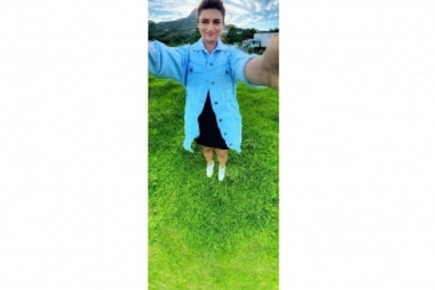 Divyanka posted a selfie on Instagram where she is actually lying on a grassy patch, but the shot has been taken in a way that it seems the sky is below her and she is hanging from the grass.