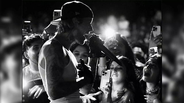 One of the images shows Shehnaaz cheering for Justin from front. Sharing Justin's post, Shehnaaz on her Instagram Story wrote, "Dream come true (Red heart emoji)." In another post, Shehnaaz dropped a clip of Justin's performance that she recorded.