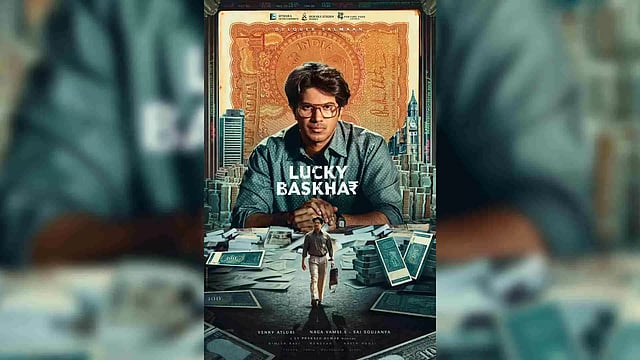 "Celebrating twelve years of my magical journey in Cinema, here's presenting the first look of our very ambitious #LuckyBaskhar. #LuckyBaskharFirstLook. Story unfolds in Telugu, Malayalam, Tamil & Hindi at the theatres near you, soon!" the actor wrote in his post.