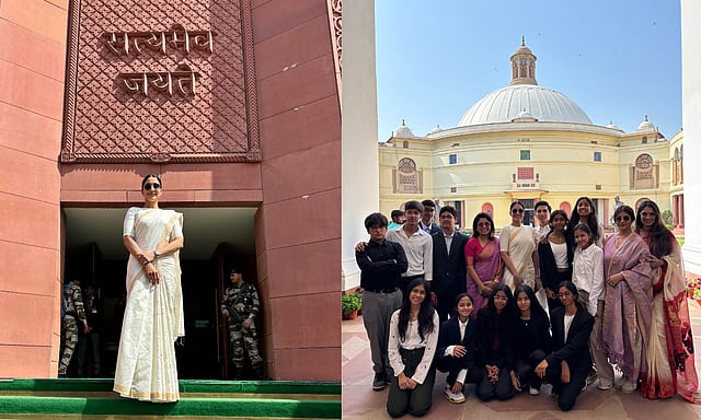 CHENNAI: It is usual for an actor’s social media story or post to be liked or receive comments. But Regena Cassandrra’s Instagram story from the Parliament in New Delhi, earlier this week drew everyone’s attention and became a talking point among netizens. Seen in a trad look in an off white saree, and a mid-partitioned hair, we couldn’t help but ask if she has taken a political plunge, with a huge smile, she says, “Certainly not. But I see this as a bigger responsibility. As a part of my NGO, Democratic Sangha, we have started a program called Young Leaders For Social Change. School children and teenagers, who have the eye to take up social work and to understand how democracy works in our nation, we took them on a visit to parliament as a part of their module.”