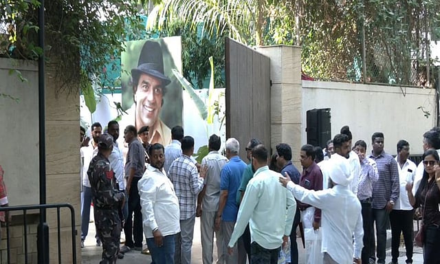 The fans have gathered outside Dharmendra's residence to express their love and pay their last respects to their favourite star. The admirers of the 'Sholay' actor were seen standing in a queue, holding a photo frame of Dharmendra.