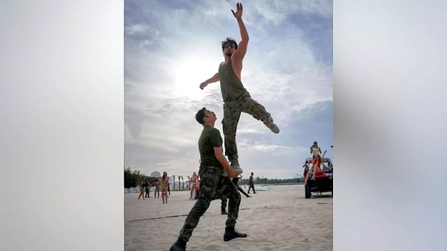 Akshay took to Instagram, where he shared two pictures. In one image, the focus is on them holding hands. The second image features Akshay and Tiger doing a stunt. The ‘Khiladi’ star is seen holding Tiger’s feet as the latter takes a high jump.