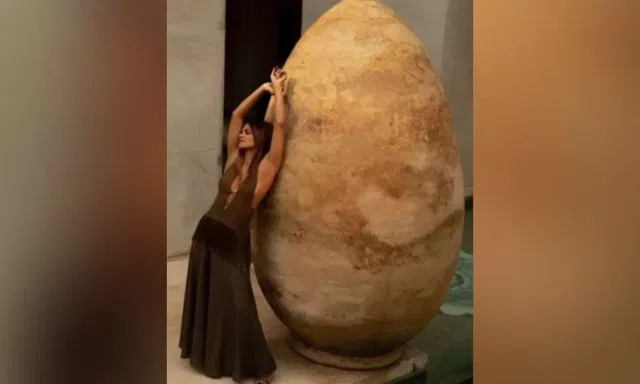 However, some of her followers were distracted by the large, egg-shaped ornament she was posing against in the photo. "Gorgeous even when leaning against a giant potato," one quipped.