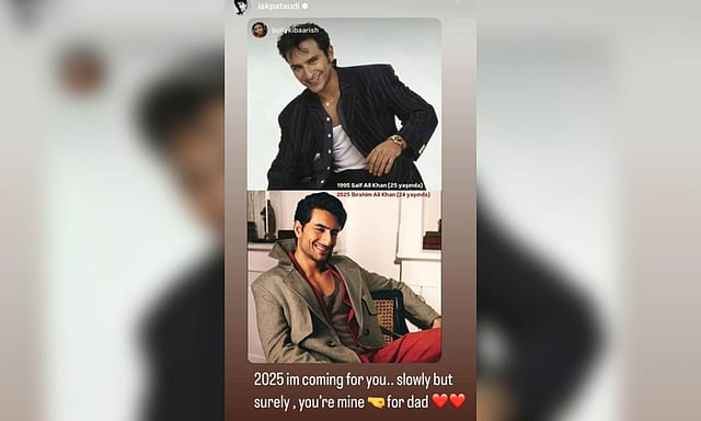 For the caption, the brother of actress Sara Ali Khan wrote: “2025 im coming for you.. slowly but surely, you're mine…. For dad.”