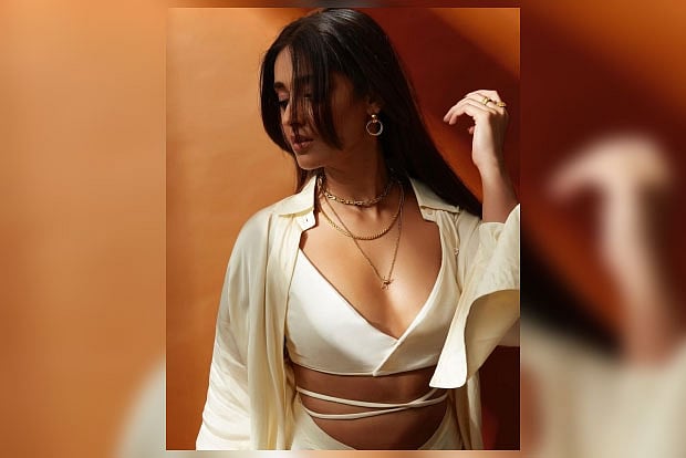 In the image, Ileana wears an ivory coloured low-neck, cut-out crop top paired with a linen shirt. She completed the look with thin gold chains and earrings.