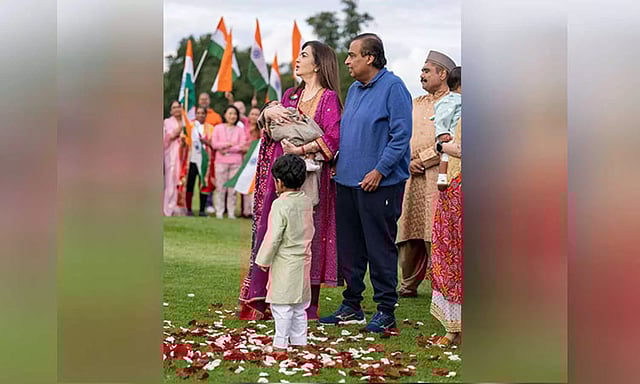 Pictures and videos from the Ambanis' I-Day celebrations surfaced on social media on Wednesday. The glimpses showed Nita Ambani standing next to her husband and waving the national flag. However, it was their grandchildren who stole the attention with their cuteness.