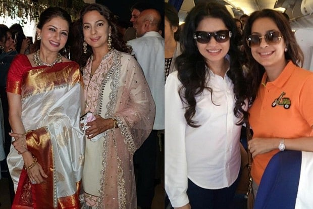 "Kyunki Maine Pyaar Kiya Qayamat Se Qayamat Tak," wrote Juhi as caption with a couple of smileys, along with two images. The first image is from an event while the second picture is clicked inside a plane.