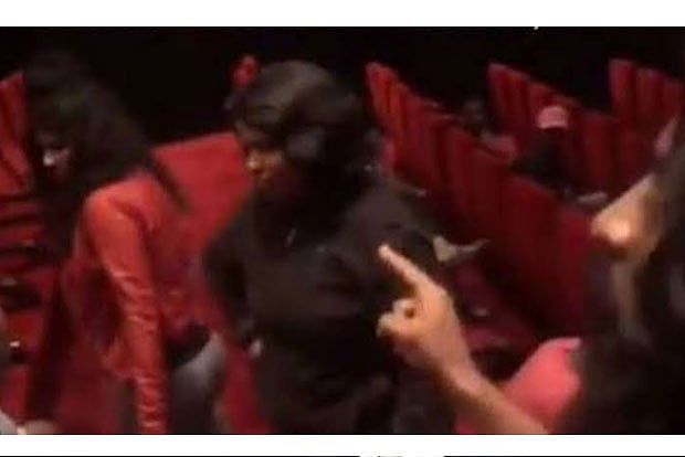 Aishwarya can be seen telling the family to get out of the cinema hall if they cannot stand up.