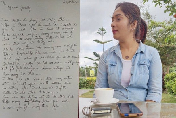 She has left behind a four-page suicide note expressing ''sorry'' for taking the extreme step.