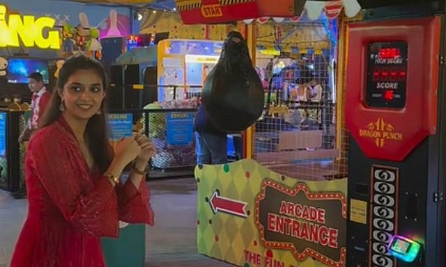 CHENNAI: Southern beauty Keerthy Suresh let her inner baddie out as she delivered a powerful punch on the punching machine.