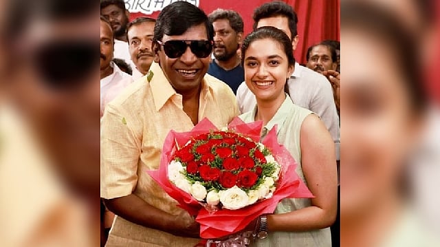 Keerthy, who took part in the birthday celebrations of Vadivelu on the sets of 'Maamannan', posted pictures of the celebration and wrote: "Super happy to wrap up #Maamannan along with Vaigai Puyal Vadivel sir's birthday. Happy Birthday sir." "Thank you for this incredible journey, Udhayanidhi Stalin, Mari Selvaraj, Fahadh Faasil, Vadivelu sir, Theni Eswar and team."