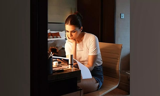 In the pictures, Kriti could be seen sitting in front of a mirror and reading a script.