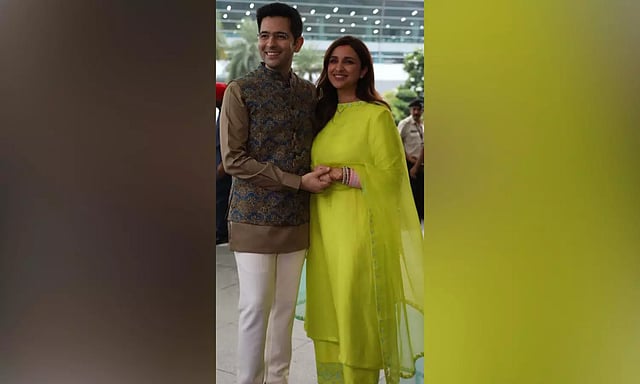 NEW DELHI: After their grand wedding celebrations at the city of lakes Udaipur, the newly-wed newsmaking couple, AAP Rajya Sabha MP Raghav Chadha and Bollywood actress Parineeti Chopra have returned to the Capital for the bride's 'griha pravesh' at Raghav's Pandara Road MP's bungalow.