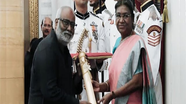 NEW DELHI: Oscar-winning song Naatu Naatu's music composer MM Keeravaani, on Wednesday, was awarded the fourth highest civilian award, Padma Shri, by President Draupadi Murmu at a gilded ceremony at the Rashtrapati Bhavan. Prime Minister Narendra Modi and Union Home Minister Amit Shah were in attendance during the presentation ceremony.