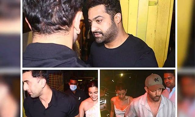 On Sunday night, NTR Jr and his wife Lakshmi Pranathi met with couple Ranbir Kapoor and Alia Bhatt and filmmakers Karan Johar and Ayan Mukerji. Hrithik also joined them with his girlfriend Saba Azad.