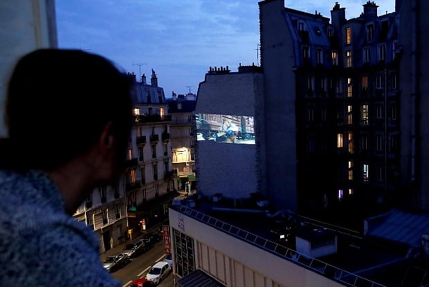 Under the lockdown restrictions, Parisians are confined to their apartments except for brief outings to shop for food and exercise. But they can catch the movie by looking out or their windows or stepping out onto their balcony.