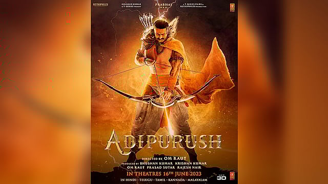 In the intriguing poster, the 'Baahubali' actor could be seen dressed up as Lord Ram holding a bow and arrow in his hand and the 'Jai Shri Ram' song playing in the background.