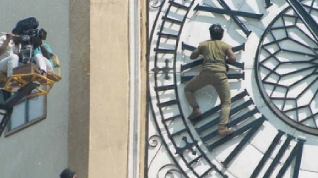 "In this scene, terrorists had planted a bomb in the clock tower of this building where Ministers gathered for a meeting and Vijayakanth sir was to climb the clock tower and stop the clock to diffuse the bomb.