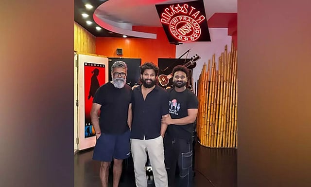 MUMBAI: Building more excitement among the fans, actor Allu Arjun shared a photo with 'Pushpa: The Rule' director Sukumar and music director Devi Sri Prasad from a music recording session.